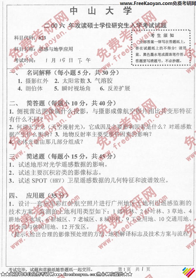 专业课考研经验 本站小编 FreeKaoyan 2018-01-22中山大学2006年考研真题-污染气象学