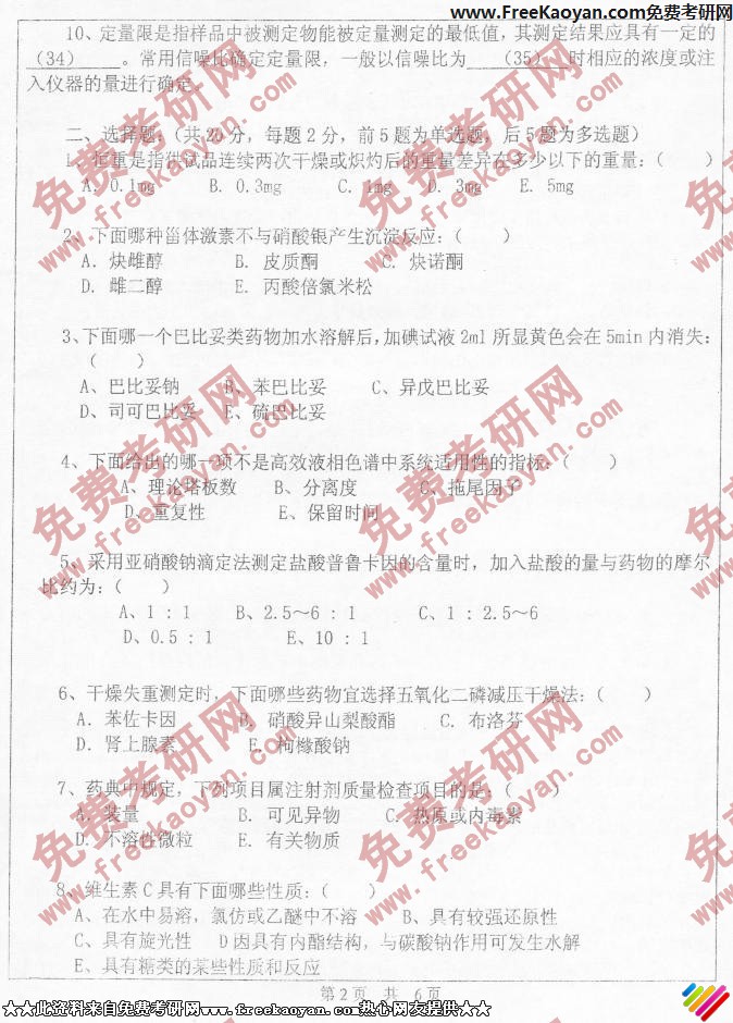 专业课考研经验 本站小编 FreeKaoyan 2018-01-22中山大学2006年考研真题-天然药物化学
