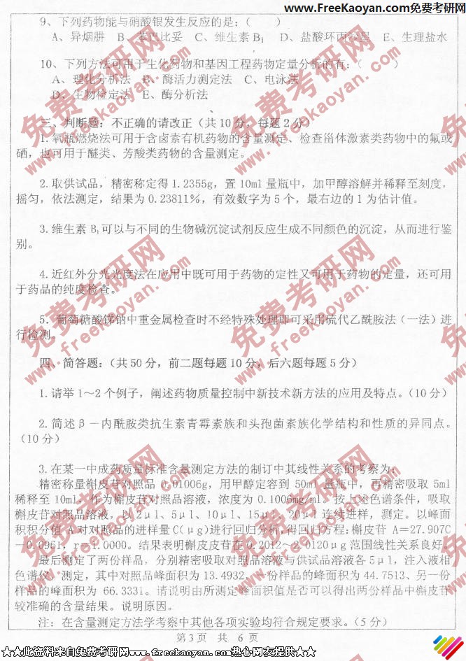 专业课考研经验 本站小编 FreeKaoyan 2018-01-22中山大学2006年考研真题-天然药物化学