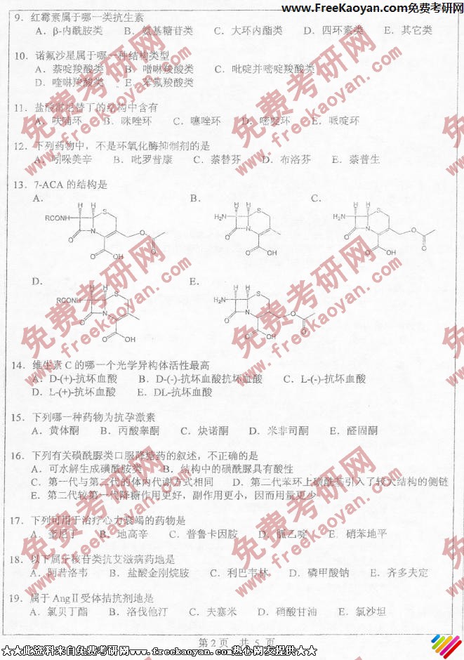 中山大学2006年考研真题-药物化学(2)