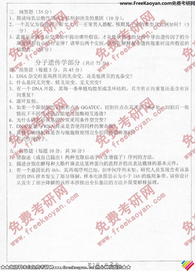 相关话题/遗传学 考研真题 中山大学 分子