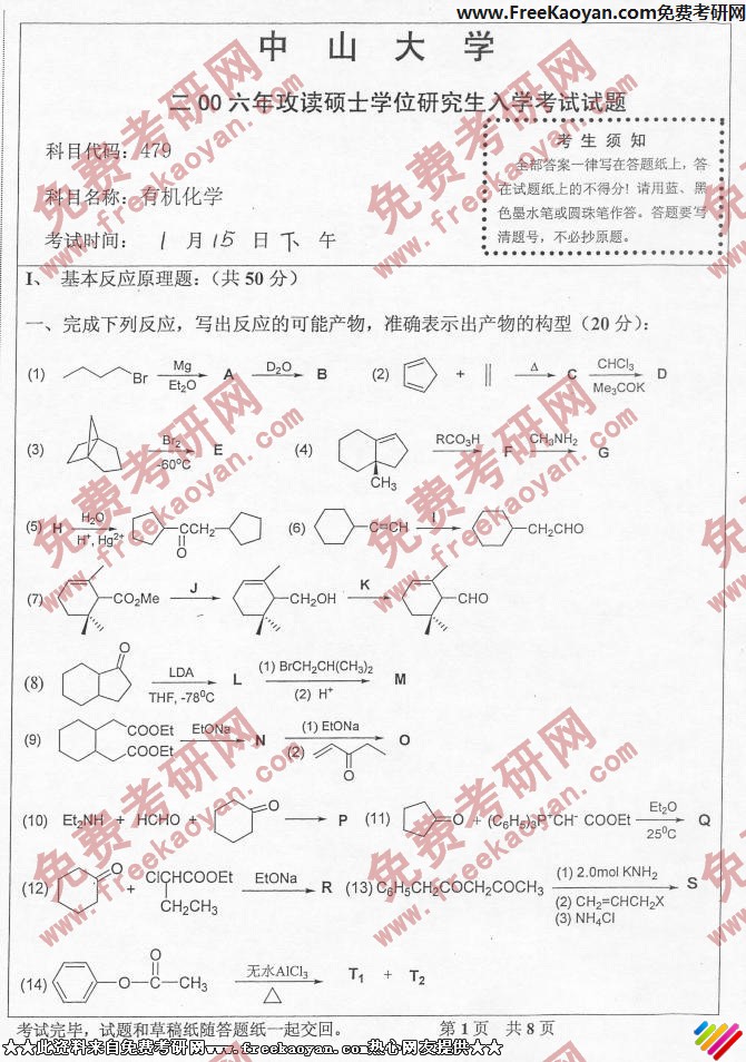 中山大学2006年考研真题-有机化学