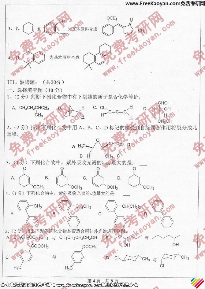 专业课考研经验 本站小编 FreeKaoyan 2018-01-22中山大学2006年考研真题-药物分析学