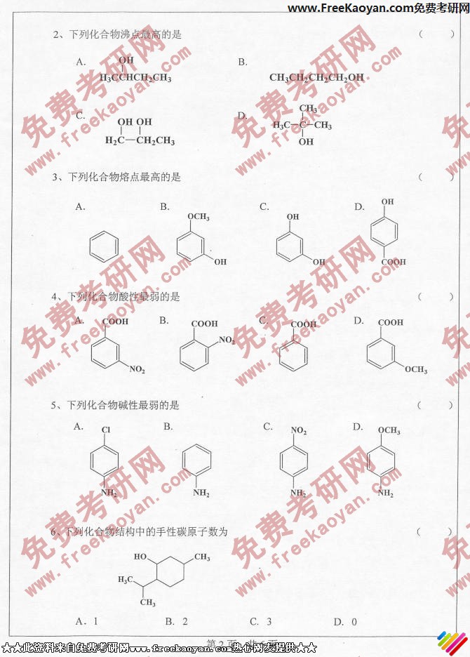 中山大学2006年考研真题-有机化学基础(2)(2)