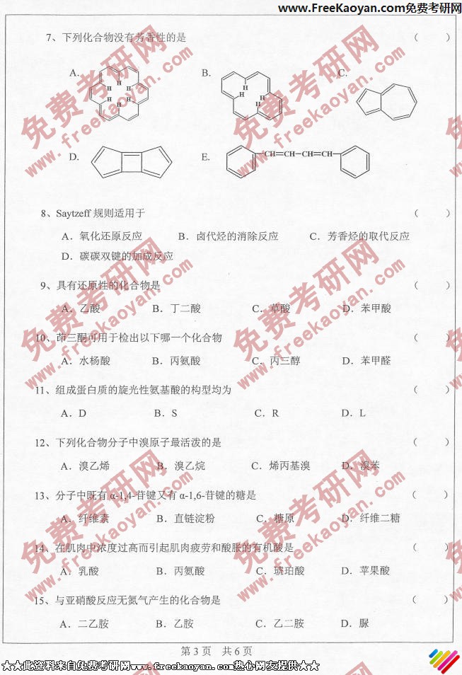 中山大学2006年考研真题-有机化学基础(2)(3)