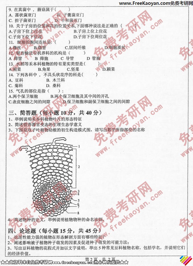专业课考研经验 本站小编 FreeKaoyan 2018-01-22中山大学2006年考研真题-植物学
