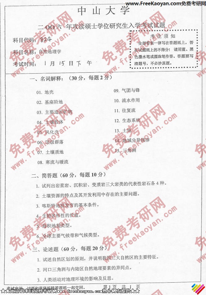 专业课考研经验 本站小编 FreeKaoyan 2018-01-22中山大学2006年考研真题-遥感与地学应用