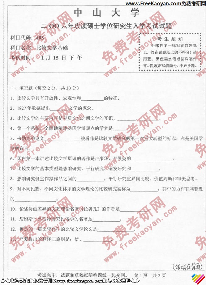 专业课考研经验 本站小编 FreeKaoyan 2018-01-22中山大学2006年考研真题-自然地理学