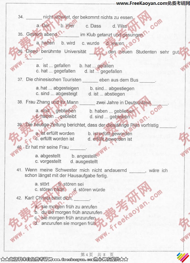 中山大学2006年考研真题-德语(4)