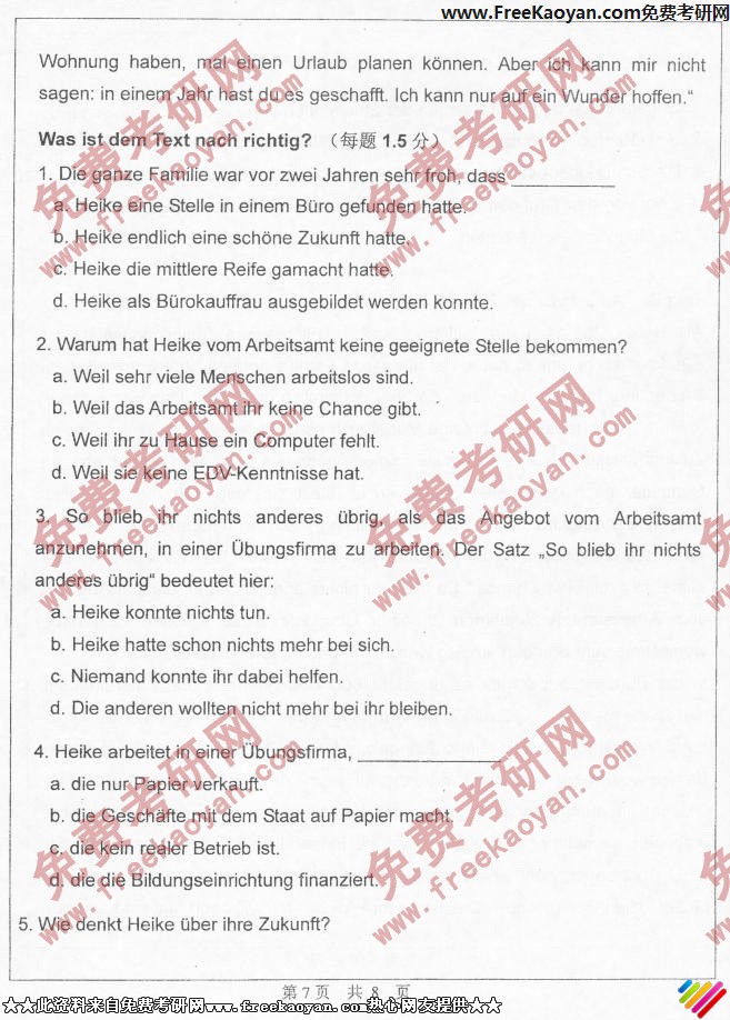 中山大学2006年考研真题-德语(7)