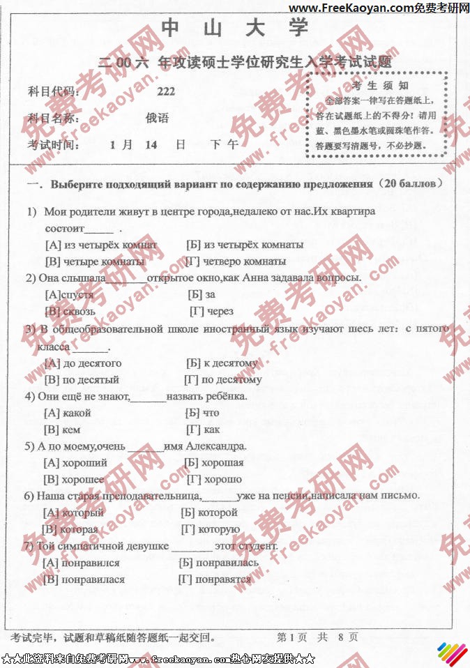 中山大学2006年考研真题-俄语
