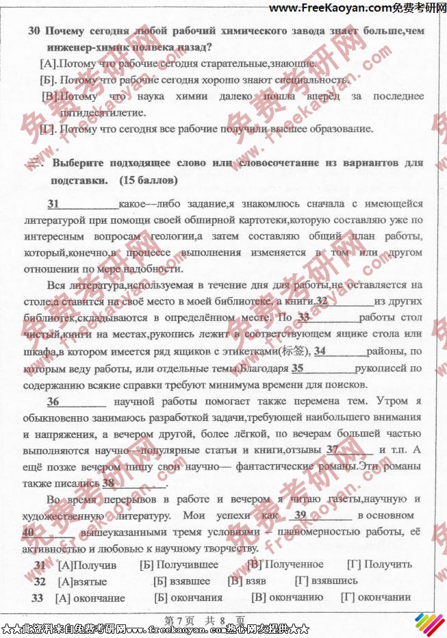 中山大学2006年考研真题-俄语(7)
