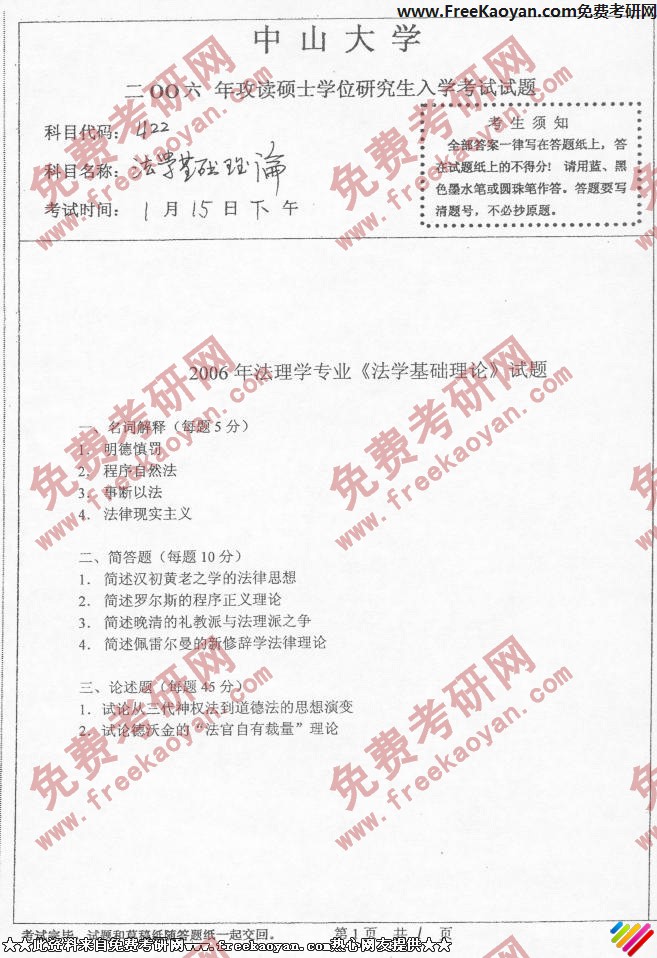 专业课考研经验 本站小编 FreeKaoyan 2018-01-22中山大学2006年考研真题-法理学