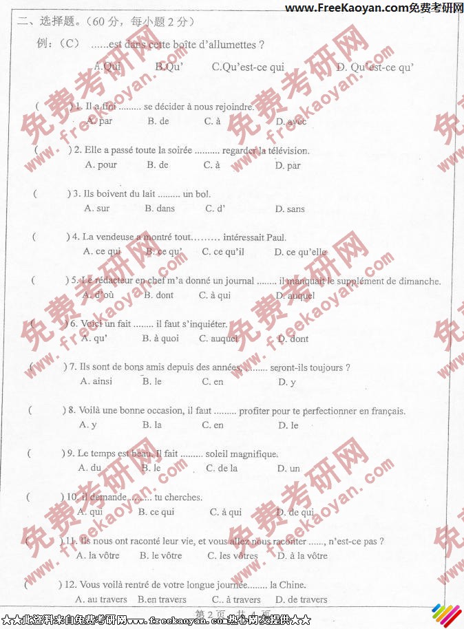 中山大学2006年考研真题-法语(2)