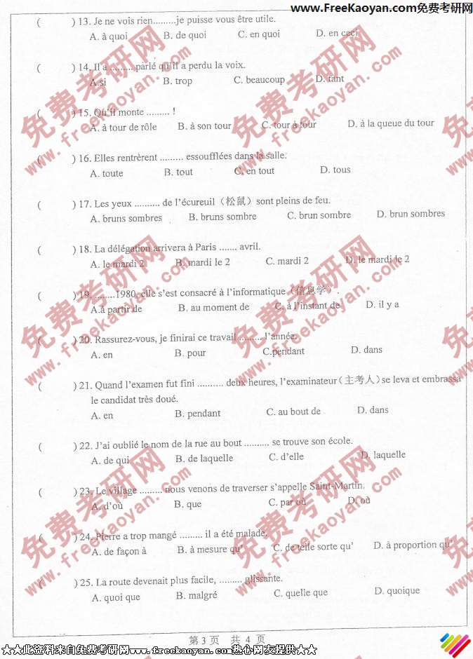专业课考研经验 本站小编 FreeKaoyan 2018-01-22中山大学2006年考研真题-法国文学