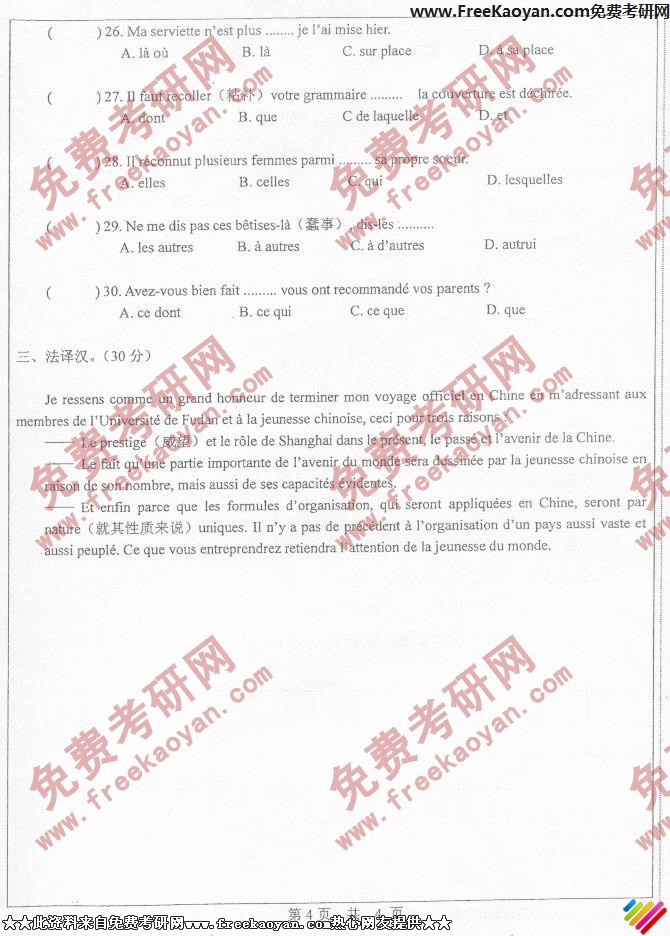专业课考研经验 本站小编 FreeKaoyan 2018-01-22中山大学2006年考研真题-法国文学