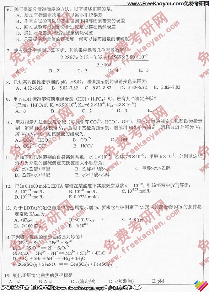 中山大学2006年考研真题-分析化学(2)