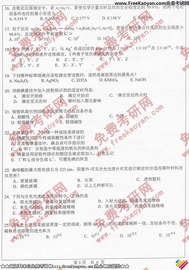 专业课考研经验 本站小编 FreeKaoyan 2018-01-22中山大学2006年考研真题-地球化学