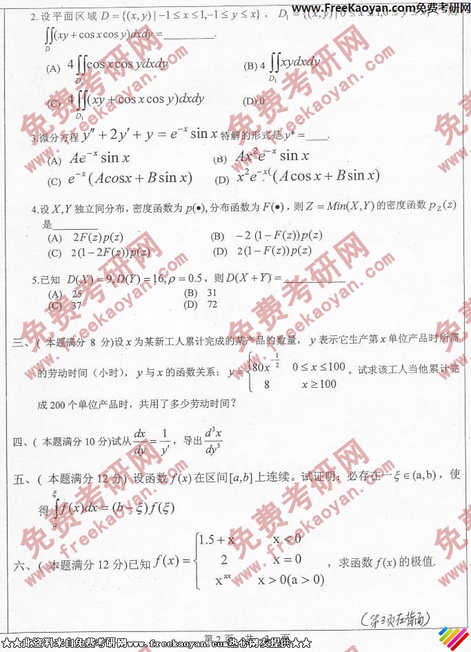 专业课考研经验 本站小编 FreeKaoyan 2018-01-22中山大学2006年考研真题-高等数学(A)