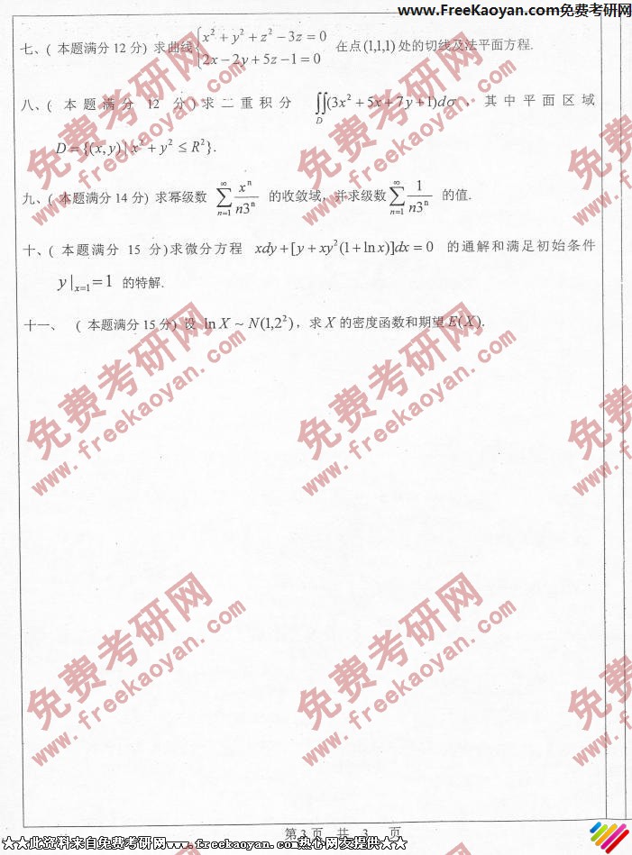 专业课考研经验 本站小编 FreeKaoyan 2018-01-22中山大学2006年考研真题-高等数学(A)