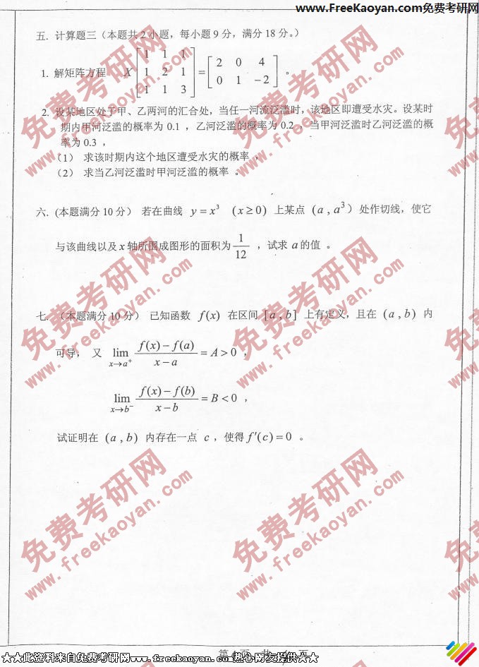 专业课考研经验 本站小编 FreeKaoyan 2018-01-22中山大学2006年考研真题-高等数学(A)