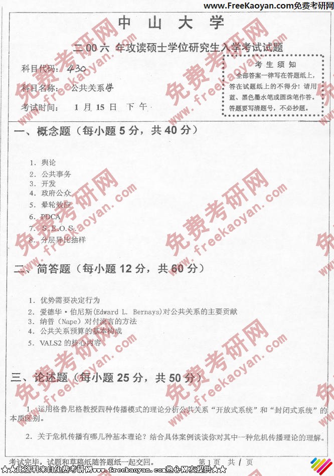 专业课考研经验 本站小编 FreeKaoyan 2018-01-22中山大学2006年考研真题-大众传播学