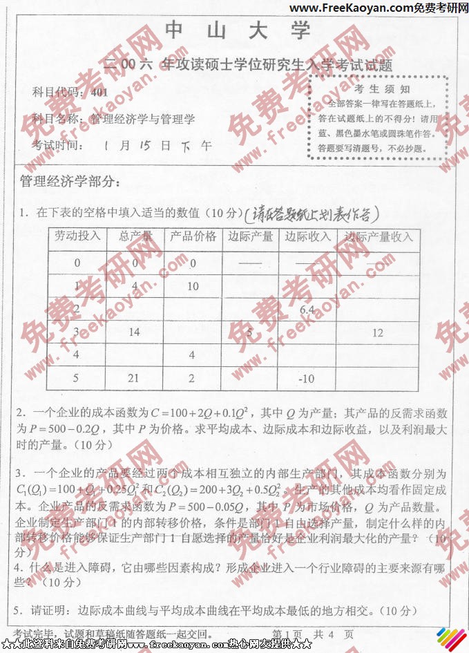 相关话题/考研真题 中山大学 管理 管理学 经济学