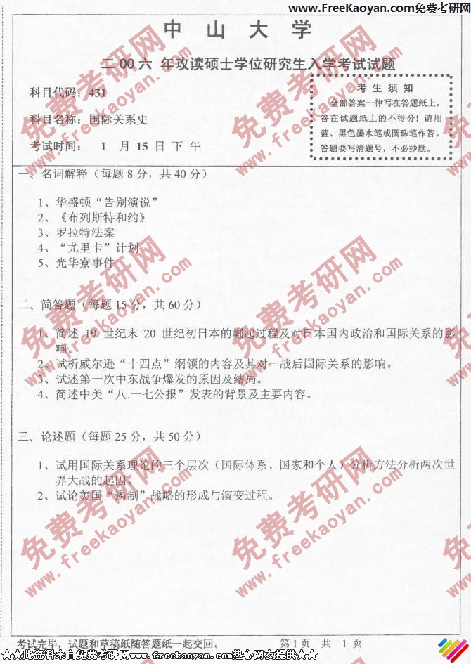 专业课考研经验 本站小编 FreeKaoyan 2018-01-22中山大学2006年考研真题-公共管理