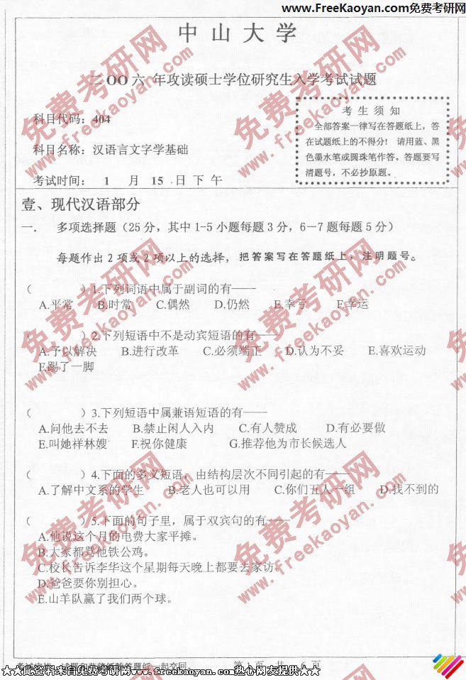 专业课考研经验 本站小编 FreeKaoyan 2018-01-22中山大学2006年考研真题-法语