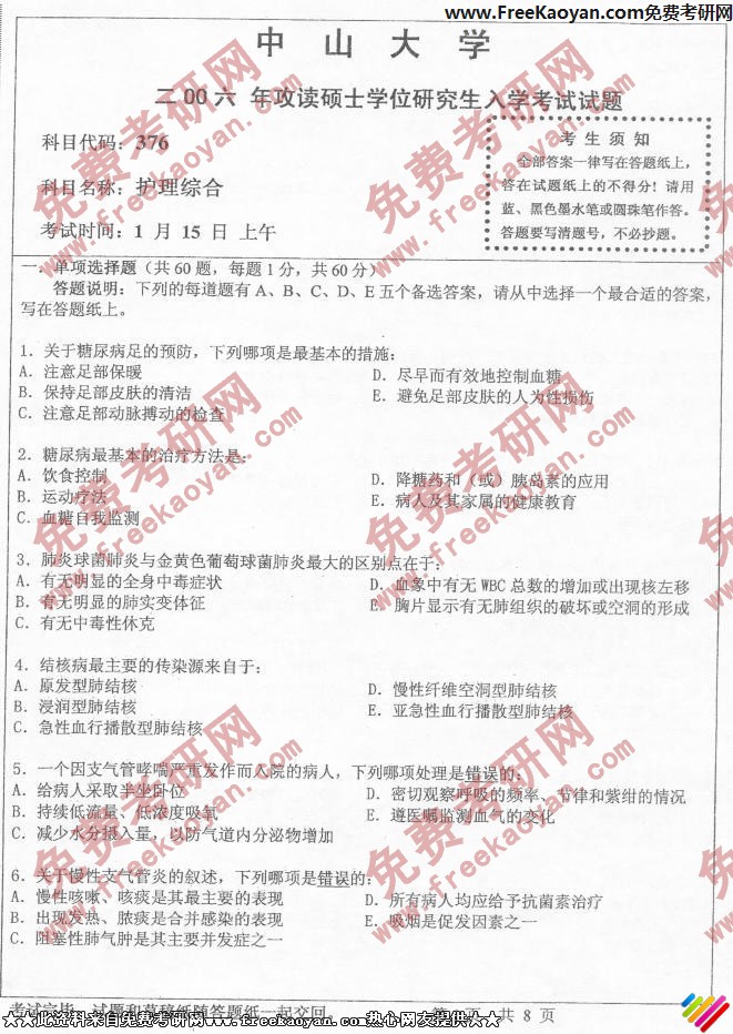 专业课考研经验 本站小编 FreeKaoyan 2018-01-22中山大学2006年考研真题-高等数学(A)