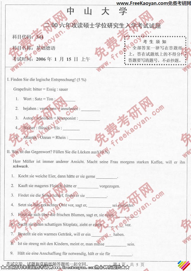 专业课考研经验 本站小编 FreeKaoyan 2018-01-22中山大学2006年考研真题-古典诗学