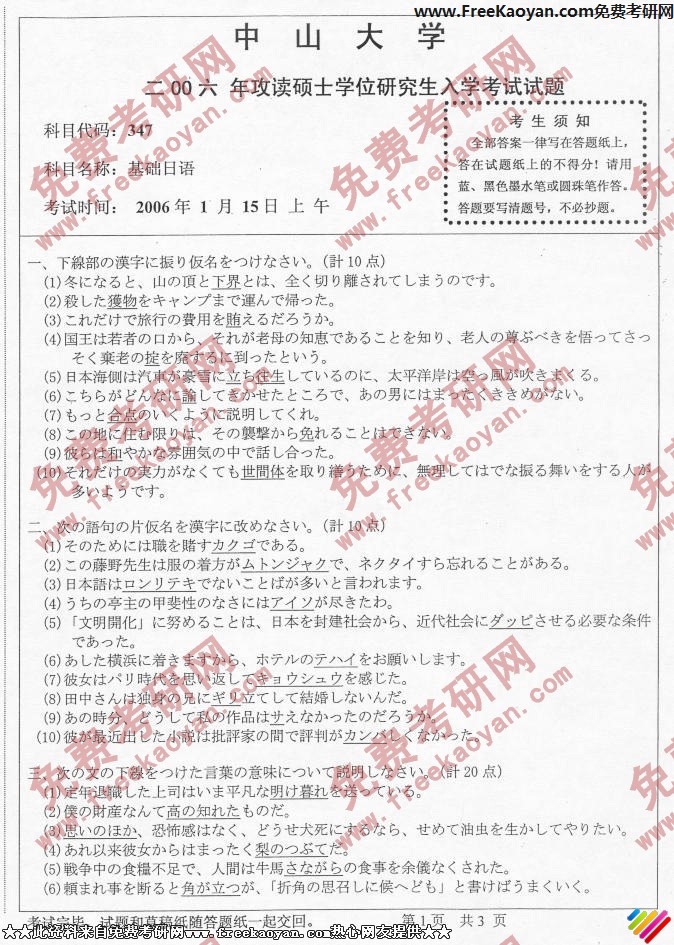 专业课考研经验 本站小编 FreeKaoyan 2018-01-22中山大学2006年考研真题-基础法语