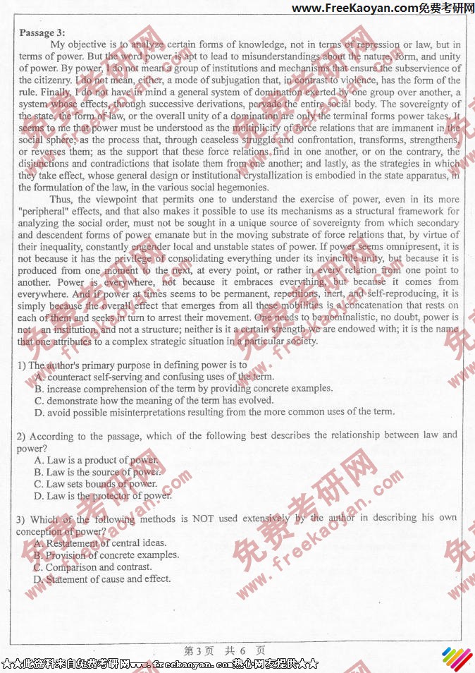 中山大学2006年考研真题-基础英语(3)