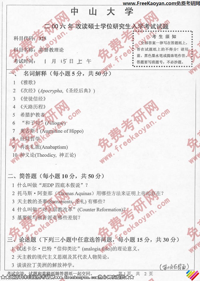 专业课考研经验 本站小编 FreeKaoyan 2018-01-22中山大学2006年考研真题-国际政治概论