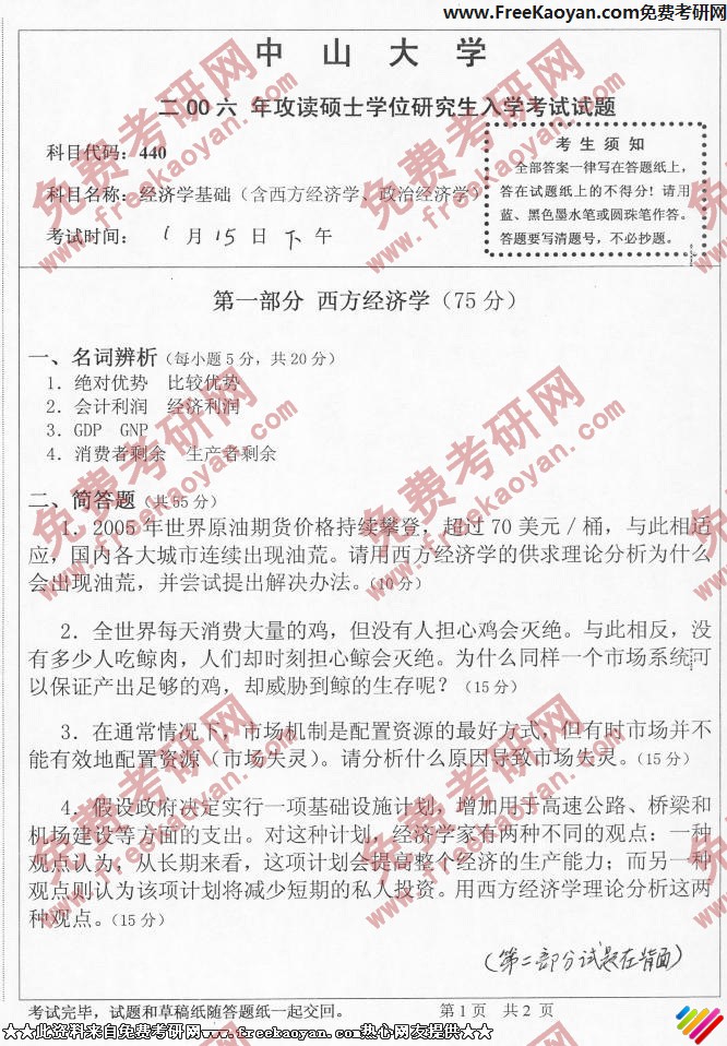 中山大学2006年考研真题-经济学基础(含西方经济学、政治经济学)
