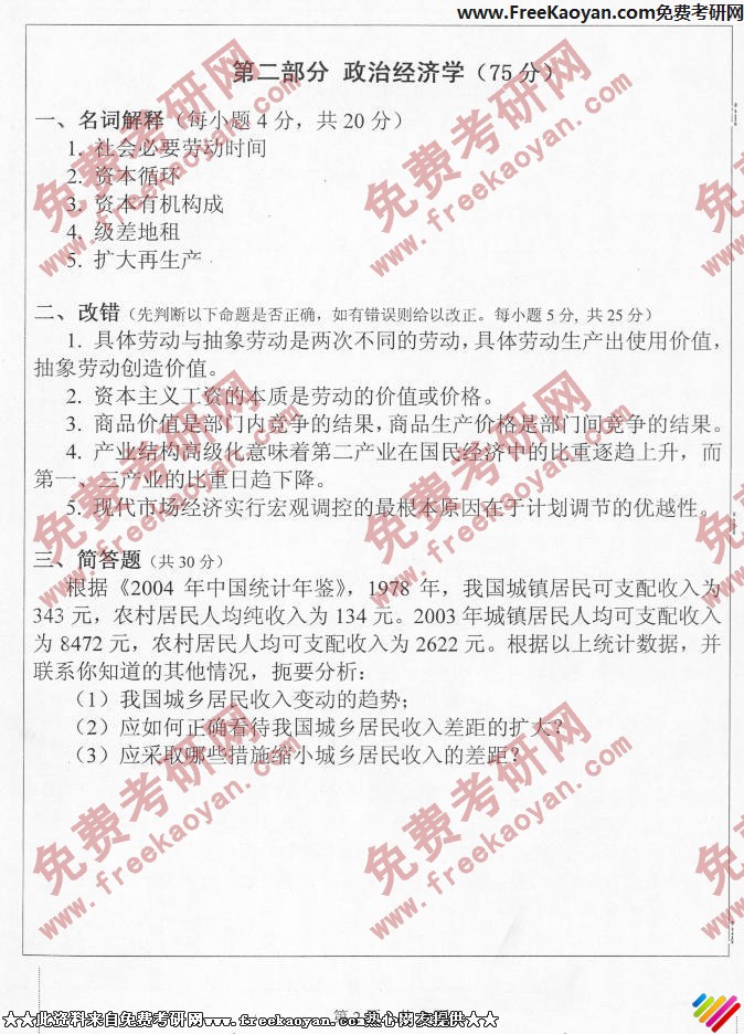 中山大学2006年考研真题-经济学基础(含西方经济学、政治经济学)(2)