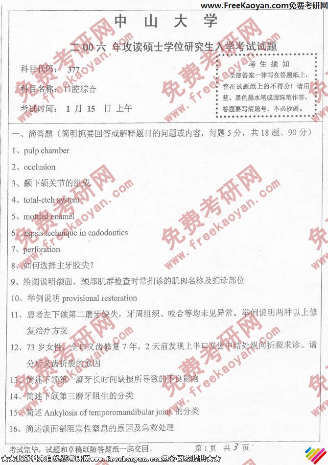 专业课考研经验 本站小编 FreeKaoyan 2018-01-22中山大学2006年考研真题-护理综合