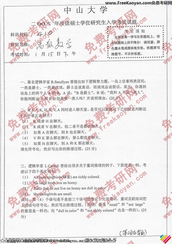 中山大学2006年考研真题-离散数学
