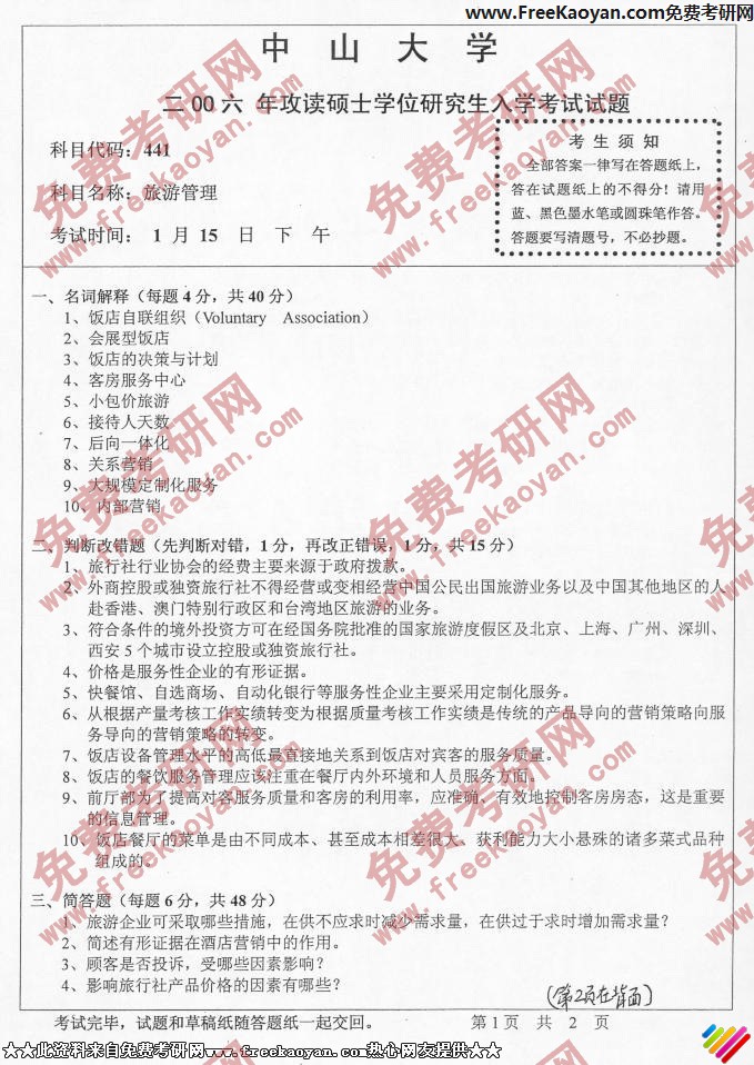 相关话题/中山大学 考研真题 旅游管理