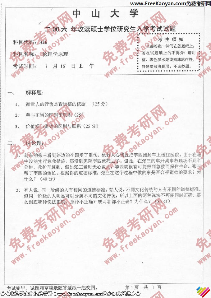 专业课考研经验 本站小编 FreeKaoyan 2018-01-22中山大学2006年考研真题-基督教理论