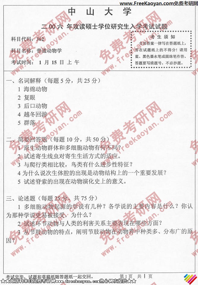 专业课考研经验 本站小编 FreeKaoyan 2018-01-22中山大学2006年考研真题-口腔综合