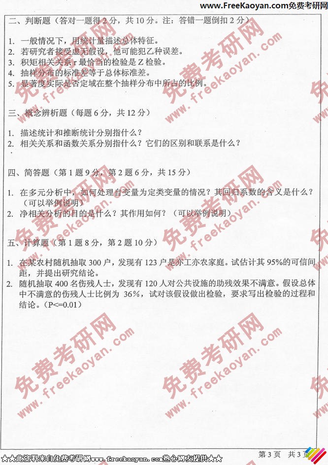 中山大学2006年考研真题-社会研究方法和社会统计学(3)