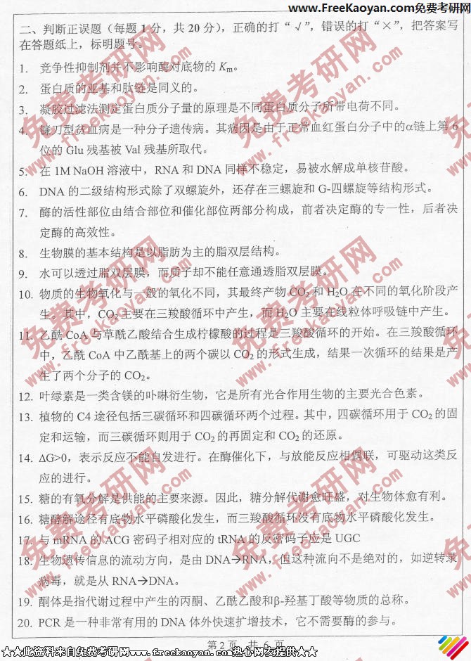 中山大学2006年考研真题-生物化学(2)