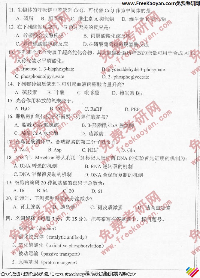 中山大学2006年考研真题-生物化学(4)