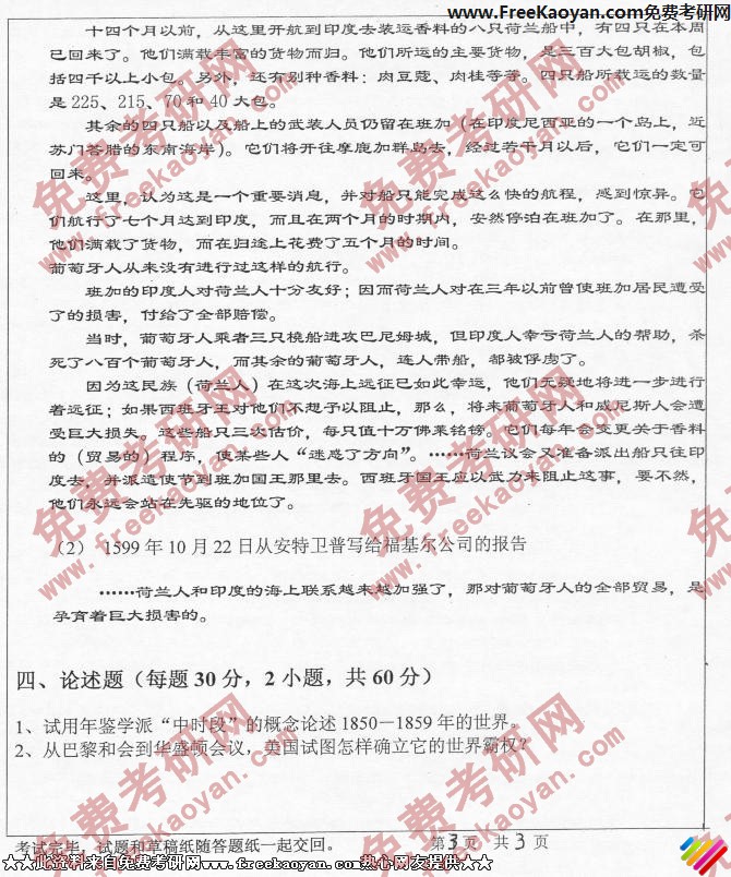 中山大学2006年考研真题-世界通史(1945年前)(3)