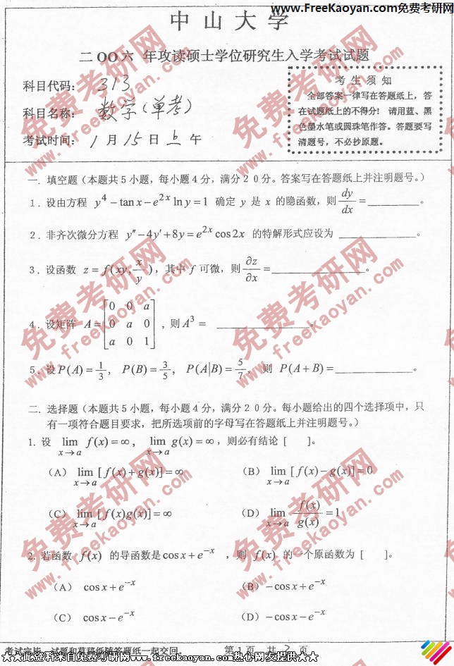 专业课考研经验 本站小编 FreeKaoyan 2018-01-22中山大学2006年考研真题-数理逻辑