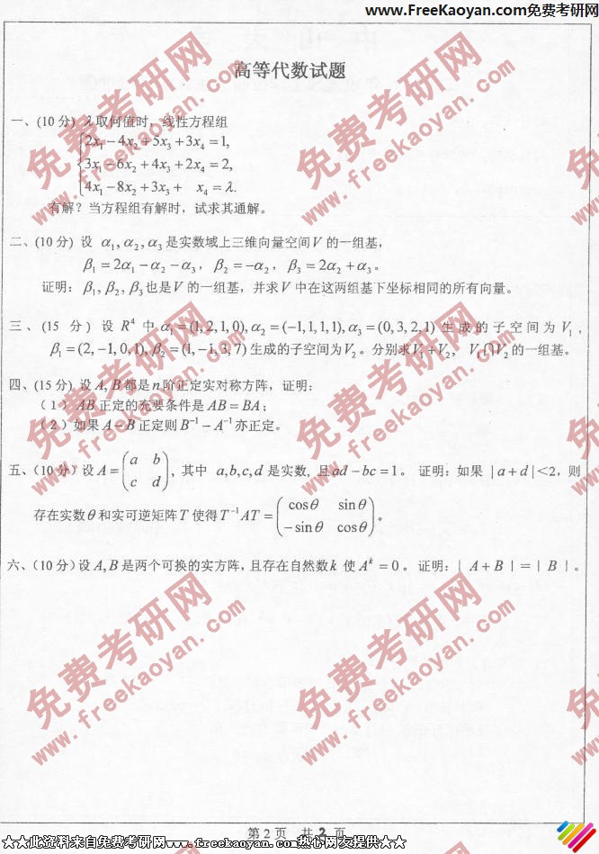 中山大学2006年考研真题-数学分析与高等代数(2)