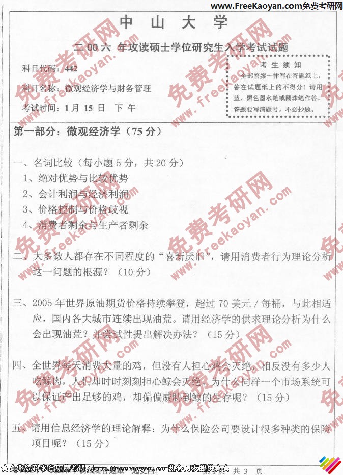 相关话题/考研真题 中山大学 财务管理 微观经济学