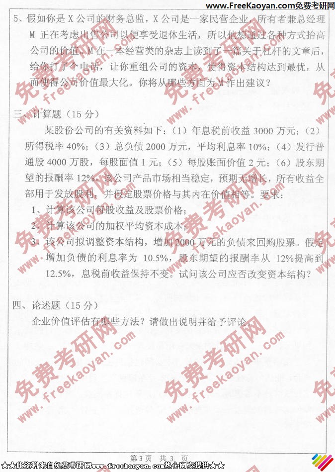 中山大学2006年考研真题-微观经济学与财务管理(3)