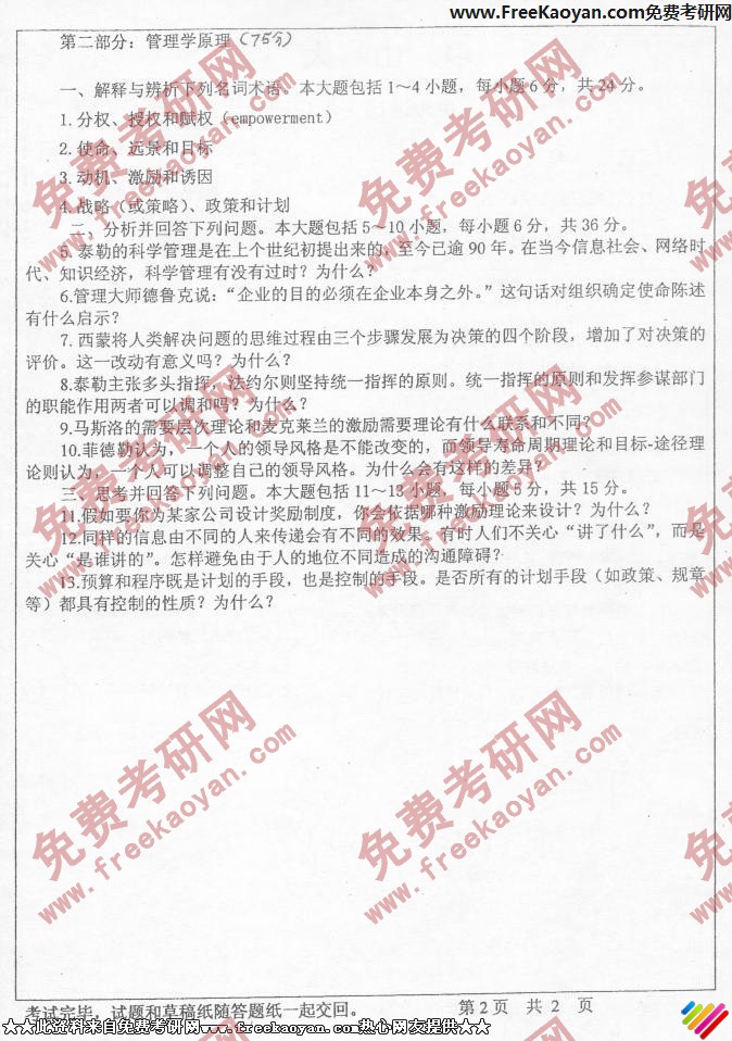 专业课考研经验 本站小编 FreeKaoyan 2018-01-22中山大学2006年考研真题-体育管理学